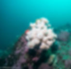 We parked our rented car in a layby, scrambled down to the water's edge and swam along a rocky ridge. The visibility was stunning and the rocks were covered in what looked like tiny corals. In the shallower waters there was also a massive smack of lion's mane jelly fish, at times we had to open the way to swim through the curtain of their loooong tentacles. Although this was all very pretty, Kristin did not let us be distracted and led us quickly to the highlight of this dive, big boulders at about 20m each with its own plume anemone garden. Most boulders just had anemones of one color: either green, orange, yellow or white, which looked very peculiar.